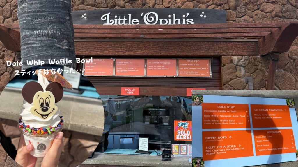 「Dole Whip Waffle Bowl」を注文すると、ミッキーorミニーどちらかを選択。お味は、バニラ・パイナップル・ミックスから選べます。
