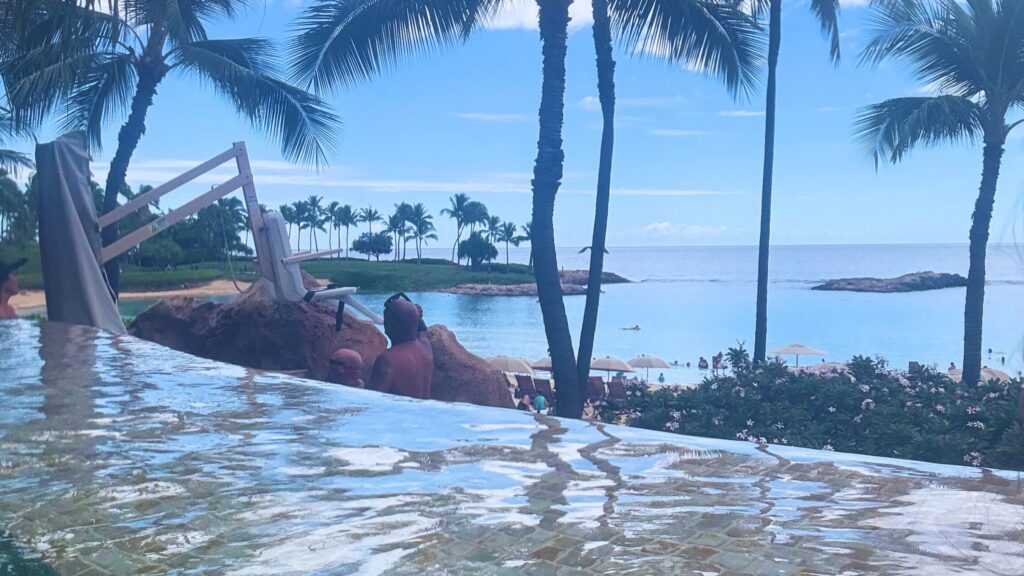 また、グアムに行く時は、必須アイテムだった、「マリンシューズ」「フルフェイス型のシュノーケリングマスク」は、アウラニ・ワイキキビーチでは不要でした。